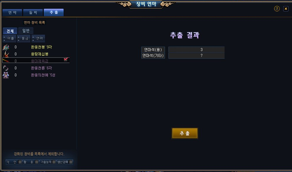 뭔지 모르겟으니 장비추출과 연마를 해보았습니다.