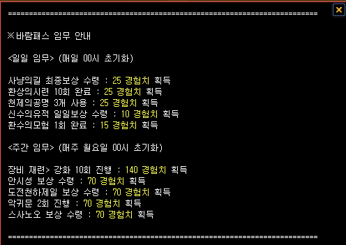 <주간 임무> (매주 월요일 00시 초기화)