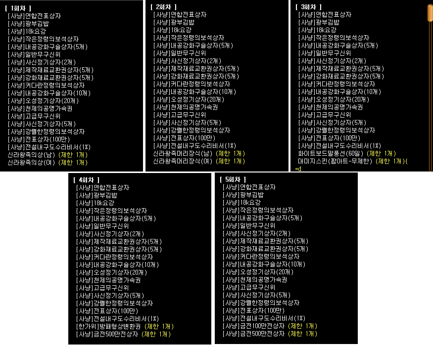 연합전표상자, 내공강화구슬상자(5개), 강화재료교환권상자(5개)