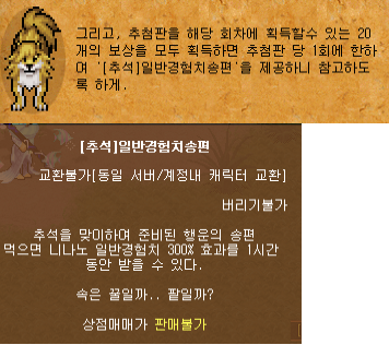 추첨판당 1회에 한하여 일반경험치 송편을 준다고하네요