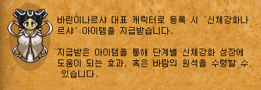 신체강화나르샤 아이템을 지급받습니다.