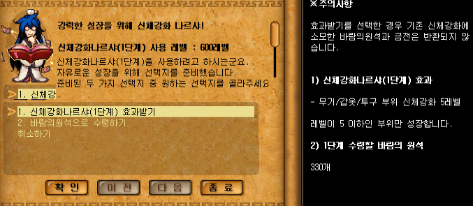 저는 1번 신체강화나르샤 효과를 받아보도록하겠습니다.