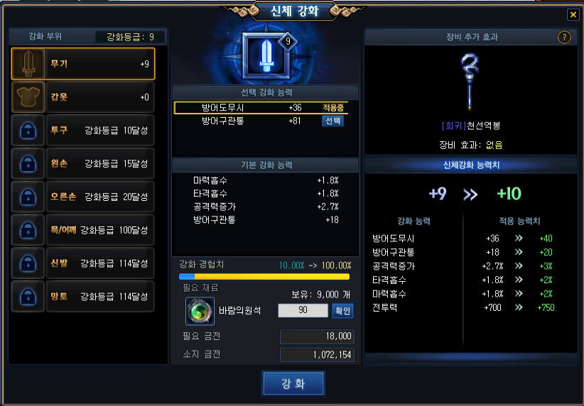 (무기/갑옷/투구 부위 신체강화 5레벨)