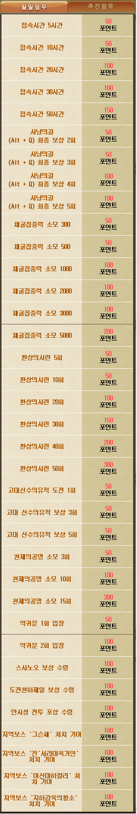 사냥의길(Alt+Q) 최종보상 2회 획득 50포인트