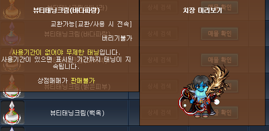 와.. 거래소에서도 치장 미리보기가 가능합니다.