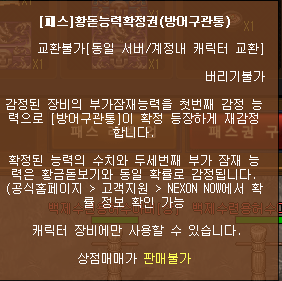 교환불가[동일서버 / 계정 내 캐릭터 교환]