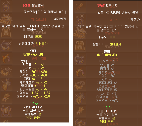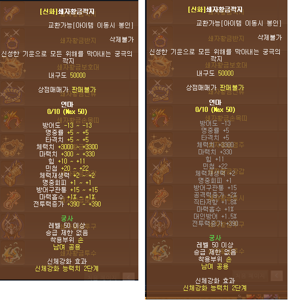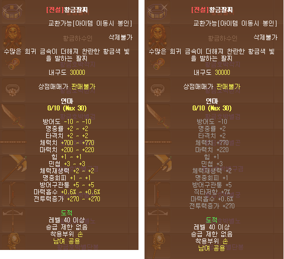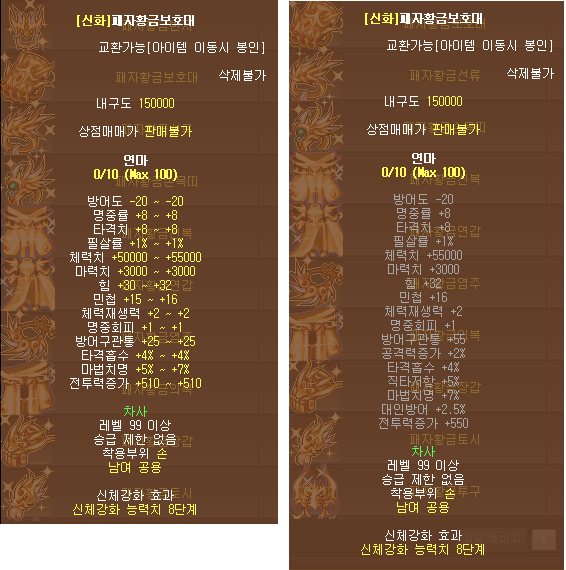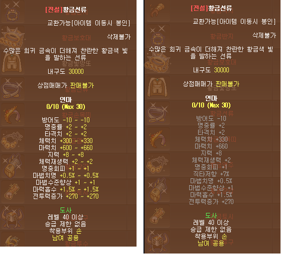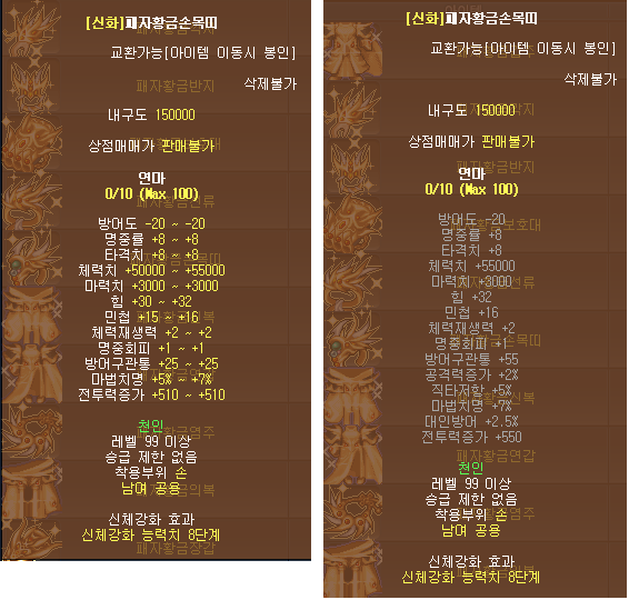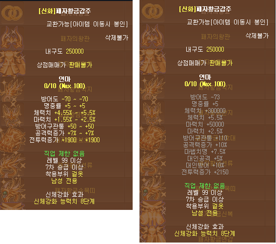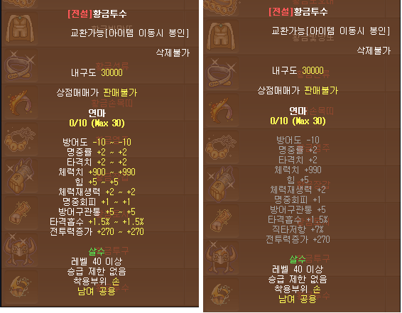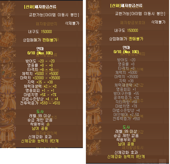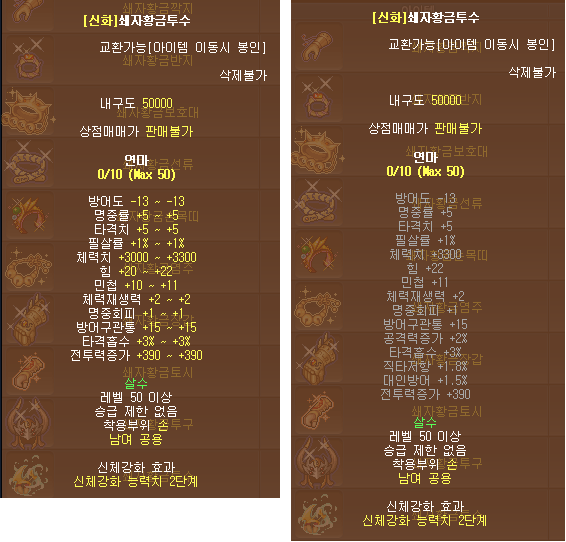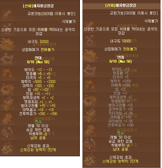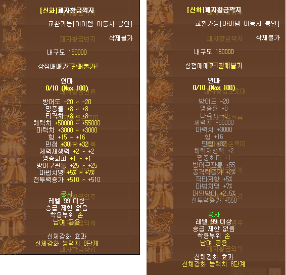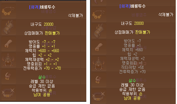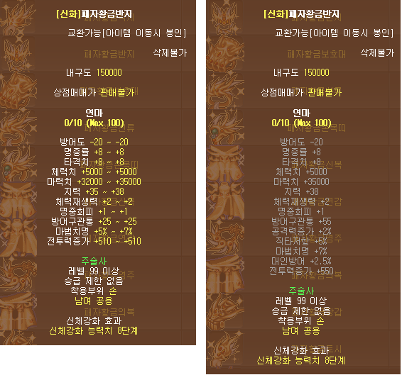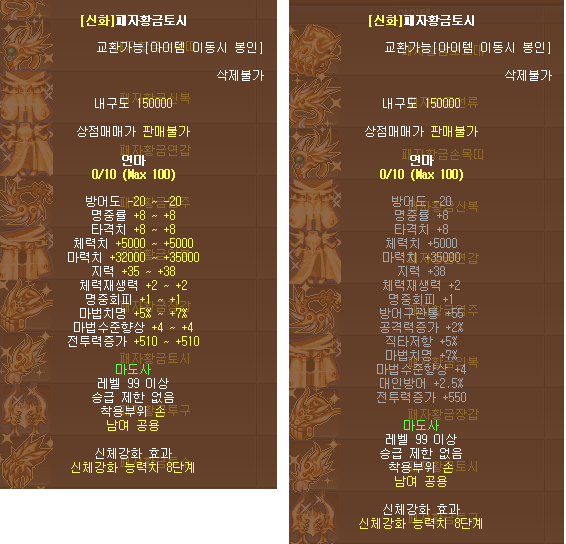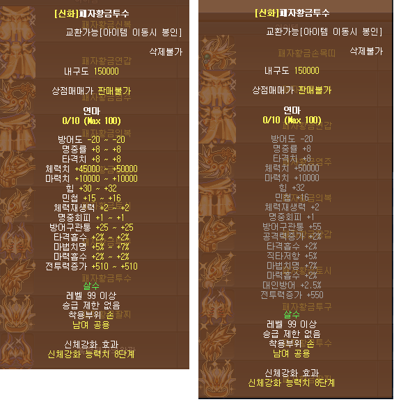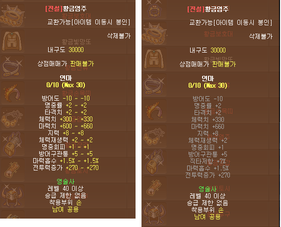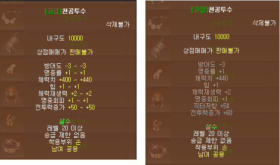왼쪽이 본서버 / 오른쪽이 조정된 괴유서버입니다.