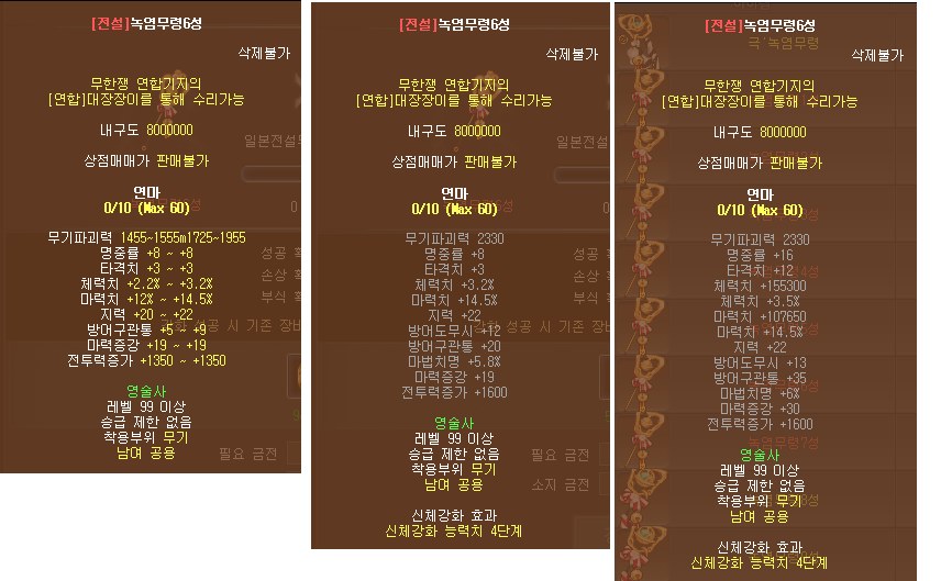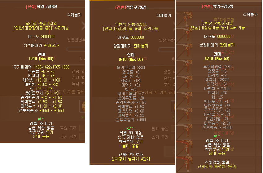 | 바람의나라 타계전설 장비 무기/방패 능력치변경 사항 (0) | 2026.02.06 |