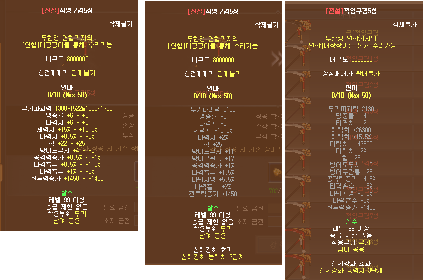 | 바람의나라 중국전설 장비 무기/방패 능력치변경 사항 (0) | 2026.02.05 |