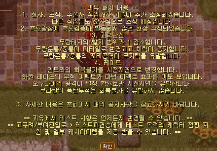 바람의나라 5단계 레이드 보상 일부 수정 하칸레이드기존 브리트라1/6성 장비에서브리트라1/5성 장비로브리트라레이드기존 브리트라1/6/9성 장비에서브리트라1/5/8성 장비로 바람의나라 괴유 정보 2026.03.16